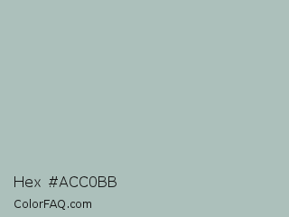 Hex #acc0bb Color is a light cyan color and the nearest color is Tower Gray #a9bdbf. Hex code #acc0bb and RGB value is rgb(172,192,187). In RGB color space, this color is composed of 67% red, 75% green, 73% blue, In CMYK color space, this color is composed of 10% cyan, 0% magenta, 3% yellow , 25% black , In HSL color space, this color has a hue angle of 165° , 14% saturation and 71% lightness.