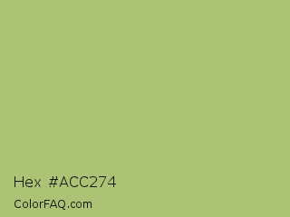 Hex #acc274 Color is a light lime color and the nearest color is Wild Willow #b9c46a. Hex code #acc274 and RGB value is rgb(172,194,116). In RGB color space, this color is composed of 67% red, 76% green, 45% blue, In CMYK color space, this color is composed of 11% cyan, 0% magenta, 40% yellow , 24% black , In HSL color space, this color has a hue angle of 77° , 39% saturation and 61% lightness.