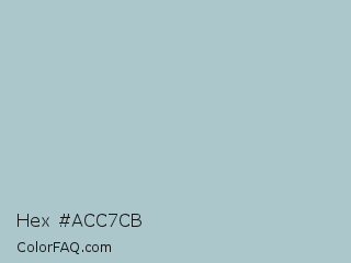 Hex #acc7cb Color is a light cyan color and the nearest color is Pastel Blue #aec6cf. Hex code #acc7cb and RGB value is rgb(172,199,203). In RGB color space, this color is composed of 67% red, 78% green, 80% blue, In CMYK color space, this color is composed of 15% cyan, 2% magenta, 0% yellow , 20% black , In HSL color space, this color has a hue angle of 188° , 23% saturation and 74% lightness.
