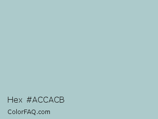 Hex #accacb Color is a light cyan color and the nearest color is Pastel Blue #aec6cf. Hex code #accacb and RGB value is rgb(172,202,203). In RGB color space, this color is composed of 67% red, 79% green, 80% blue, In CMYK color space, this color is composed of 15% cyan, 0% magenta, 0% yellow , 20% black , In HSL color space, this color has a hue angle of 182° , 23% saturation and 74% lightness.