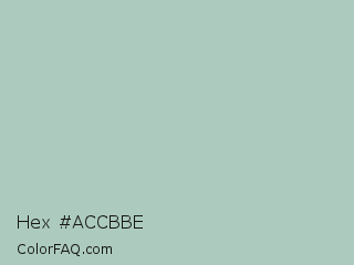 Hex #accbbe Color is a light green color and the nearest color is Opal #a9c6c2. Hex code #accbbe and RGB value is rgb(172,203,190). In RGB color space, this color is composed of 67% red, 80% green, 75% blue, In CMYK color space, this color is composed of 15% cyan, 0% magenta, 6% yellow , 20% black , In HSL color space, this color has a hue angle of 155° , 23% saturation and 74% lightness.