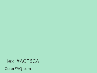 Hex #ace6ca Color is a light green color and the nearest color is Padua #ade6c4. Hex code #ace6ca and RGB value is rgb(172,230,202). In RGB color space, this color is composed of 67% red, 90% green, 79% blue, In CMYK color space, this color is composed of 25% cyan, 0% magenta, 12% yellow , 10% black , In HSL color space, this color has a hue angle of 151° , 54% saturation and 79% lightness.