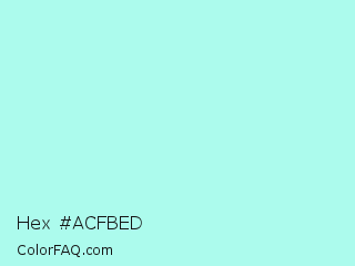 Hex #acfbed Color is a very light cyan color and the nearest color is Ice Cold #b1f4e7. Hex code #acfbed and RGB value is rgb(172,251,237). In RGB color space, this color is composed of 67% red, 98% green, 93% blue, In CMYK color space, this color is composed of 31% cyan, 0% magenta, 6% yellow , 2% black , In HSL color space, this color has a hue angle of 169° , 91% saturation and 83% lightness.