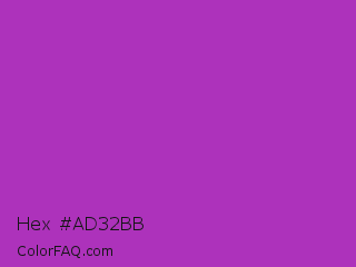 Hex #ad32bb Color is a normal magenta color and the nearest color is Dark Orchid #9932cc. Hex code #ad32bb and RGB value is rgb(173,50,187). In RGB color space, this color is composed of 68% red, 20% green, 73% blue, In CMYK color space, this color is composed of 7% cyan, 73% magenta, 0% yellow , 27% black , In HSL color space, this color has a hue angle of 294° , 58% saturation and 46% lightness.