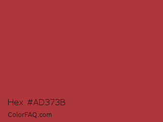 Hex #ad373b Color is a normal red color and the nearest color is Medium Carmine #af4035. Hex code #ad373b and RGB value is rgb(173,55,59). In RGB color space, this color is composed of 68% red, 22% green, 23% blue, In CMYK color space, this color is composed of 0% cyan, 68% magenta, 66% yellow , 32% black , In HSL color space, this color has a hue angle of 358° , 52% saturation and 45% lightness.