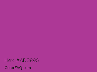 Hex #ad3896 Color is a normal magenta color and the nearest color is Fandango #b53389. Hex code #ad3896 and RGB value is rgb(173,56,150). In RGB color space, this color is composed of 68% red, 22% green, 59% blue, In CMYK color space, this color is composed of 0% cyan, 68% magenta, 13% yellow , 32% black , In HSL color space, this color has a hue angle of 312° , 51% saturation and 45% lightness.