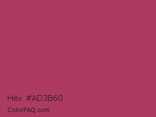 Hex #ad3b60 Color is a normal rose color and the nearest color is Night Shadz #aa375a. Hex code #ad3b60 and RGB value is rgb(173,59,96). In RGB color space, this color is composed of 68% red, 23% green, 38% blue, In CMYK color space, this color is composed of 0% cyan, 66% magenta, 45% yellow , 32% black , In HSL color space, this color has a hue angle of 341° , 49% saturation and 45% lightness.