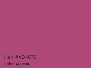 Hex #ad4879 Color is a normal rose color and the nearest color is Mystic Maroon #ad4379. Hex code #ad4879 and RGB value is rgb(173,72,121). In RGB color space, this color is composed of 68% red, 28% green, 47% blue, In CMYK color space, this color is composed of 0% cyan, 58% magenta, 30% yellow , 32% black , In HSL color space, this color has a hue angle of 331° , 41% saturation and 48% lightness.