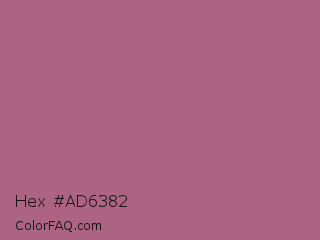 Hex #ad6382 Color is a normal rose color and the nearest color is Tapestry #b05e81. Hex code #ad6382 and RGB value is rgb(173,99,130). In RGB color space, this color is composed of 68% red, 39% green, 51% blue, In CMYK color space, this color is composed of 0% cyan, 43% magenta, 25% yellow , 32% black , In HSL color space, this color has a hue angle of 335° , 31% saturation and 53% lightness.