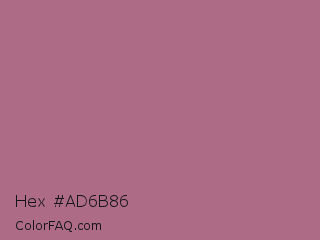 Hex #ad6b86 Color is a normal rose color and the nearest color is Turkish Rose #b57281. Hex code #ad6b86 and RGB value is rgb(173,107,134). In RGB color space, this color is composed of 68% red, 42% green, 53% blue, In CMYK color space, this color is composed of 0% cyan, 38% magenta, 23% yellow , 32% black , In HSL color space, this color has a hue angle of 335° , 29% saturation and 55% lightness.