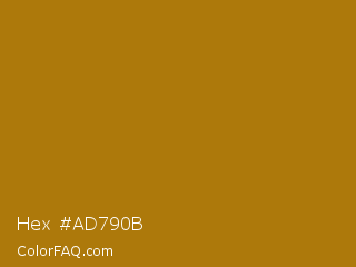 Hex #ad790b Color is a normal orange color and the nearest color is Hot Toddy #b38007. Hex code #ad790b and RGB value is rgb(173,121,11). In RGB color space, this color is composed of 68% red, 47% green, 4% blue, In CMYK color space, this color is composed of 0% cyan, 30% magenta, 94% yellow , 32% black , In HSL color space, this color has a hue angle of 41° , 88% saturation and 36% lightness.