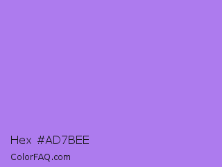 Hex #ad7bee Color is a light violet color and the nearest color is Lavender #b57edc. Hex code #ad7bee and RGB value is rgb(173,123,238). In RGB color space, this color is composed of 68% red, 48% green, 93% blue, In CMYK color space, this color is composed of 27% cyan, 48% magenta, 0% yellow , 7% black , In HSL color space, this color has a hue angle of 266° , 77% saturation and 71% lightness.
