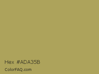 Hex #ada35b Color is a normal yellow color and the nearest color is Husk #b7a458. Hex code #ada35b and RGB value is rgb(173,163,91). In RGB color space, this color is composed of 68% red, 64% green, 36% blue, In CMYK color space, this color is composed of 0% cyan, 6% magenta, 47% yellow , 32% black , In HSL color space, this color has a hue angle of 53° , 33% saturation and 52% lightness.