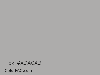 Hex #adacab Color is a light orange color and the nearest color is Silver Chalice #acacac. Hex code #adacab and RGB value is rgb(173,172,171). In RGB color space, this color is composed of 68% red, 67% green, 67% blue, In CMYK color space, this color is composed of 0% cyan, 1% magenta, 1% yellow , 32% black , In HSL color space, this color has a hue angle of 30° , 1% saturation and 67% lightness.