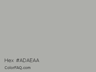 Hex #adaeaa Color is a light lime color and the nearest color is Silver Chalice #acacac. Hex code #adaeaa and RGB value is rgb(173,174,170). In RGB color space, this color is composed of 68% red, 68% green, 67% blue, In CMYK color space, this color is composed of 1% cyan, 0% magenta, 2% yellow , 32% black , In HSL color space, this color has a hue angle of 75° , 2% saturation and 67% lightness.