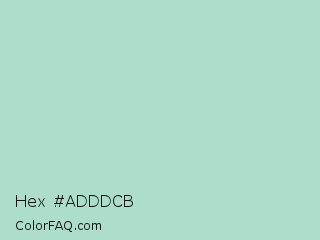 Hex #adddcb Color is a light green color and the nearest color is Padua #ade6c4. Hex code #adddcb and RGB value is rgb(173,221,203). In RGB color space, this color is composed of 68% red, 87% green, 80% blue, In CMYK color space, this color is composed of 22% cyan, 0% magenta, 8% yellow , 13% black , In HSL color space, this color has a hue angle of 158° , 41% saturation and 77% lightness.