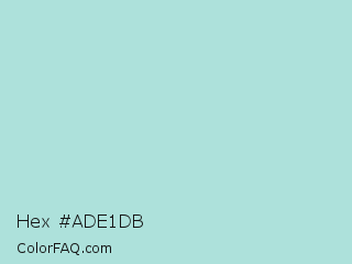 Hex #ade1db Color is a light cyan color and the nearest color is Powder Blue #b0e0e6. Hex code #ade1db and RGB value is rgb(173,225,219). In RGB color space, this color is composed of 68% red, 88% green, 86% blue, In CMYK color space, this color is composed of 23% cyan, 0% magenta, 3% yellow , 12% black , In HSL color space, this color has a hue angle of 173° , 46% saturation and 78% lightness.