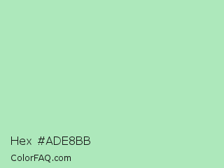 Hex #ade8bb Color is a light green color and the nearest color is Chinook #a8e3bd. Hex code #ade8bb and RGB value is rgb(173,232,187). In RGB color space, this color is composed of 68% red, 91% green, 73% blue, In CMYK color space, this color is composed of 25% cyan, 0% magenta, 19% yellow , 9% black , In HSL color space, this color has a hue angle of 134° , 56% saturation and 79% lightness.