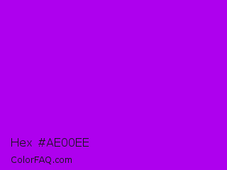 Hex #ae00ee Color is a normal purple color and the nearest color is Vivid Mulberry #b80ce3. Hex code #ae00ee and RGB value is rgb(174,0,238). In RGB color space, this color is composed of 68% red, 0% green, 93% blue, In CMYK color space, this color is composed of 27% cyan, 100% magenta, 0% yellow , 7% black , In HSL color space, this color has a hue angle of 284° , 100% saturation and 47% lightness.