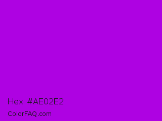 Hex #ae02e2 Color is a normal purple color and the nearest color is Vivid Mulberry #b80ce3. Hex code #ae02e2 and RGB value is rgb(174,2,226). In RGB color space, this color is composed of 68% red, 1% green, 89% blue, In CMYK color space, this color is composed of 23% cyan, 99% magenta, 0% yellow , 11% black , In HSL color space, this color has a hue angle of 286° , 98% saturation and 45% lightness.