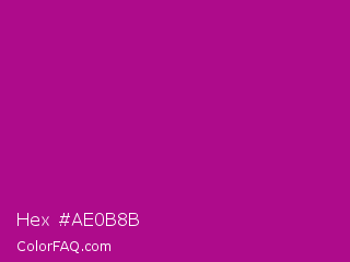 Hex #ae0b8b Color is a normal magenta color and the nearest color is Violet Eggplant #991199. Hex code #ae0b8b and RGB value is rgb(174,11,139). In RGB color space, this color is composed of 68% red, 4% green, 55% blue, In CMYK color space, this color is composed of 0% cyan, 94% magenta, 20% yellow , 32% black , In HSL color space, this color has a hue angle of 313° , 88% saturation and 36% lightness.