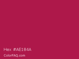 Hex #ae184a Color is a normal rose color and the nearest color is French Wine #ac1e44. Hex code #ae184a and RGB value is rgb(174,24,74). In RGB color space, this color is composed of 68% red, 9% green, 29% blue, In CMYK color space, this color is composed of 0% cyan, 86% magenta, 57% yellow , 32% black , In HSL color space, this color has a hue angle of 340° , 76% saturation and 39% lightness.