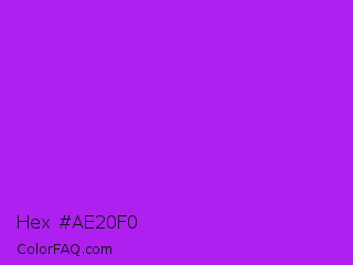 Hex #ae20f0 Color is a normal purple color and the nearest color is Veronica #a020f0. Hex code #ae20f0 and RGB value is rgb(174,32,240). In RGB color space, this color is composed of 68% red, 13% green, 94% blue, In CMYK color space, this color is composed of 28% cyan, 87% magenta, 0% yellow , 6% black , In HSL color space, this color has a hue angle of 281° , 87% saturation and 53% lightness.