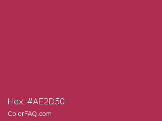 Hex #ae2d50 Color is a normal rose color and the nearest color is Amaranth Purple #ab274f. Hex code #ae2d50 and RGB value is rgb(174,45,80). In RGB color space, this color is composed of 68% red, 18% green, 31% blue, In CMYK color space, this color is composed of 0% cyan, 74% magenta, 54% yellow , 32% black , In HSL color space, this color has a hue angle of 344° , 59% saturation and 43% lightness.