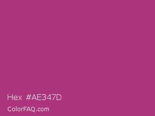 Hex #ae347d Color is a normal magenta color and the nearest color is Maximum Red Purple #a63a79. Hex code #ae347d and RGB value is rgb(174,52,125). In RGB color space, this color is composed of 68% red, 20% green, 49% blue, In CMYK color space, this color is composed of 0% cyan, 70% magenta, 28% yellow , 32% black , In HSL color space, this color has a hue angle of 324° , 54% saturation and 44% lightness.