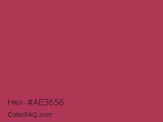 Hex #ae3656 Color is a normal rose color and the nearest color is Night Shadz #aa375a. Hex code #ae3656 and RGB value is rgb(174,54,86). In RGB color space, this color is composed of 68% red, 21% green, 34% blue, In CMYK color space, this color is composed of 0% cyan, 69% magenta, 51% yellow , 32% black , In HSL color space, this color has a hue angle of 344° , 53% saturation and 45% lightness.