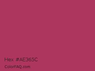 Hex #ae365c Color is a normal rose color and the nearest color is Night Shadz #aa375a. Hex code #ae365c and RGB value is rgb(174,54,92). In RGB color space, this color is composed of 68% red, 21% green, 36% blue, In CMYK color space, this color is composed of 0% cyan, 69% magenta, 47% yellow , 32% black , In HSL color space, this color has a hue angle of 341° , 53% saturation and 45% lightness.