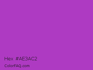 Hex #ae3ac2 Color is a normal purple color and the nearest color is Dark Orchid #9932cc. Hex code #ae3ac2 and RGB value is rgb(174,58,194). In RGB color space, this color is composed of 68% red, 23% green, 76% blue, In CMYK color space, this color is composed of 10% cyan, 70% magenta, 0% yellow , 24% black , In HSL color space, this color has a hue angle of 291° , 54% saturation and 49% lightness.