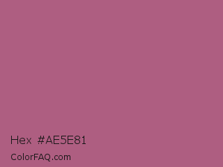 Hex #ae5e81 Color is a normal rose color and the nearest color is Tapestry #b05e81. Hex code #ae5e81 and RGB value is rgb(174,94,129). In RGB color space, this color is composed of 68% red, 37% green, 51% blue, In CMYK color space, this color is composed of 0% cyan, 46% magenta, 26% yellow , 32% black , In HSL color space, this color has a hue angle of 334° , 33% saturation and 53% lightness.