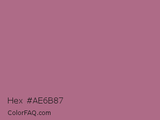 Hex #ae6b87 Color is a normal rose color and the nearest color is Turkish Rose #b57281. Hex code #ae6b87 and RGB value is rgb(174,107,135). In RGB color space, this color is composed of 68% red, 42% green, 53% blue, In CMYK color space, this color is composed of 0% cyan, 39% magenta, 22% yellow , 32% black , In HSL color space, this color has a hue angle of 335° , 29% saturation and 55% lightness.