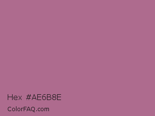 Hex #ae6b8e Color is a normal rose color and the nearest color is Turkish Rose #b57281. Hex code #ae6b8e and RGB value is rgb(174,107,142). In RGB color space, this color is composed of 68% red, 42% green, 56% blue, In CMYK color space, this color is composed of 0% cyan, 39% magenta, 18% yellow , 32% black , In HSL color space, this color has a hue angle of 329° , 29% saturation and 55% lightness.