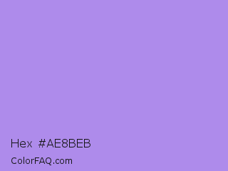 Hex #ae8beb Color is a light violet color and the nearest color is Dull Lavender #a899e6. Hex code #ae8beb and RGB value is rgb(174,139,235). In RGB color space, this color is composed of 68% red, 55% green, 92% blue, In CMYK color space, this color is composed of 26% cyan, 41% magenta, 0% yellow , 8% black , In HSL color space, this color has a hue angle of 262° , 71% saturation and 73% lightness.