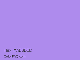 Hex #ae8bed Color is a light violet color and the nearest color is Dull Lavender #a899e6. Hex code #ae8bed and RGB value is rgb(174,139,237). In RGB color space, this color is composed of 68% red, 55% green, 93% blue, In CMYK color space, this color is composed of 27% cyan, 41% magenta, 0% yellow , 7% black , In HSL color space, this color has a hue angle of 261° , 73% saturation and 74% lightness.