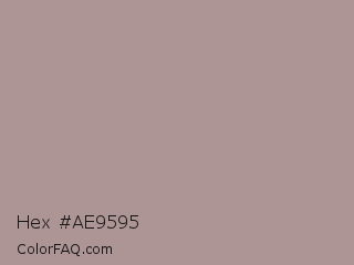 Hex #ae9595 Color is a light red color and the nearest color is Del Rio #b09a95. Hex code #ae9595 and RGB value is rgb(174,149,149). In RGB color space, this color is composed of 68% red, 58% green, 58% blue, In CMYK color space, this color is composed of 0% cyan, 14% magenta, 14% yellow , 32% black , In HSL color space, this color has a hue angle of 0° , 13% saturation and 63% lightness.