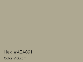 Hex #aea891 Color is a light yellow color and the nearest color is Napa #aca494. Hex code #aea891 and RGB value is rgb(174,168,145). In RGB color space, this color is composed of 68% red, 66% green, 57% blue, In CMYK color space, this color is composed of 0% cyan, 3% magenta, 17% yellow , 32% black , In HSL color space, this color has a hue angle of 48° , 15% saturation and 63% lightness.