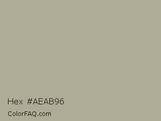 Hex #aeab96 Color is a light yellow color and the nearest color is Taupe Gray #b3af95. Hex code #aeab96 and RGB value is rgb(174,171,150). In RGB color space, this color is composed of 68% red, 67% green, 59% blue, In CMYK color space, this color is composed of 0% cyan, 2% magenta, 14% yellow , 32% black , In HSL color space, this color has a hue angle of 53° , 13% saturation and 64% lightness.