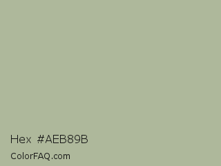 Hex #aeb89b Color is a light green color and the nearest color is Laurel Green #a9ba9d. Hex code #aeb89b and RGB value is rgb(174,184,155). In RGB color space, this color is composed of 68% red, 72% green, 61% blue, In CMYK color space, this color is composed of 5% cyan, 0% magenta, 16% yellow , 28% black , In HSL color space, this color has a hue angle of 81° , 17% saturation and 66% lightness.