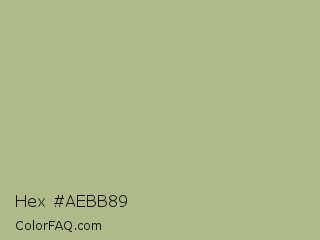 Hex #aebb89 Color is a light lime color and the nearest color is Swamp Green #acb78e. Hex code #aebb89 and RGB value is rgb(174,187,137). In RGB color space, this color is composed of 68% red, 73% green, 54% blue, In CMYK color space, this color is composed of 7% cyan, 0% magenta, 27% yellow , 27% black , In HSL color space, this color has a hue angle of 76° , 27% saturation and 64% lightness.