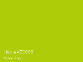 Hex #aecc08 Color is a normal yellow color and the nearest color is Bahia #a5cb0c. Hex code #aecc08 and RGB value is rgb(174,204,8). In RGB color space, this color is composed of 68% red, 80% green, 3% blue, In CMYK color space, this color is composed of 15% cyan, 0% magenta, 96% yellow , 20% black , In HSL color space, this color has a hue angle of 69° , 92% saturation and 42% lightness.