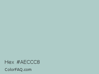 Hex #aeccc8 Color is a light cyan color and the nearest color is Pastel Blue #aec6cf. Hex code #aeccc8 and RGB value is rgb(174,204,200). In RGB color space, this color is composed of 68% red, 80% green, 78% blue, In CMYK color space, this color is composed of 15% cyan, 0% magenta, 2% yellow , 20% black , In HSL color space, this color has a hue angle of 172° , 23% saturation and 74% lightness.