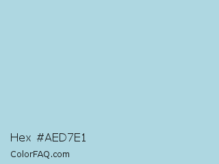 Hex #aed7e1 Color is a light cyan color and the nearest color is Light Blue #add8e6. Hex code #aed7e1 and RGB value is rgb(174,215,225). In RGB color space, this color is composed of 68% red, 84% green, 88% blue, In CMYK color space, this color is composed of 23% cyan, 4% magenta, 0% yellow , 12% black , In HSL color space, this color has a hue angle of 192° , 46% saturation and 78% lightness.