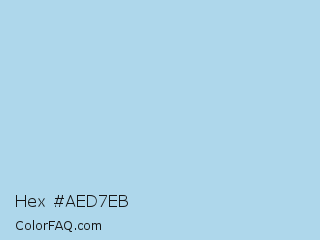 Hex #aed7eb Color is a light blue color and the nearest color is Light Blue #add8e6. Hex code #aed7eb and RGB value is rgb(174,215,235). In RGB color space, this color is composed of 68% red, 84% green, 92% blue, In CMYK color space, this color is composed of 26% cyan, 9% magenta, 0% yellow , 8% black , In HSL color space, this color has a hue angle of 200° , 60% saturation and 80% lightness.