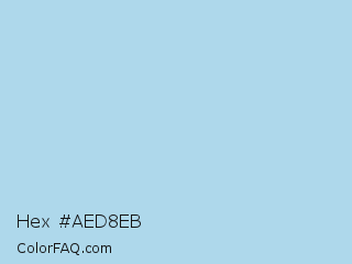 Hex #aed8eb Color is a light blue color and the nearest color is Light Blue #add8e6. Hex code #aed8eb and RGB value is rgb(174,216,235). In RGB color space, this color is composed of 68% red, 85% green, 92% blue, In CMYK color space, this color is composed of 26% cyan, 8% magenta, 0% yellow , 8% black , In HSL color space, this color has a hue angle of 199° , 60% saturation and 80% lightness.