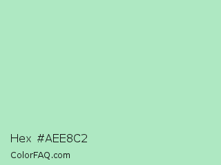 Hex #aee8c2 Color is a light green color and the nearest color is Padua #ade6c4. Hex code #aee8c2 and RGB value is rgb(174,232,194). In RGB color space, this color is composed of 68% red, 91% green, 76% blue, In CMYK color space, this color is composed of 25% cyan, 0% magenta, 16% yellow , 9% black , In HSL color space, this color has a hue angle of 141° , 56% saturation and 80% lightness.