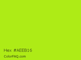 Hex #aeeb16 Color is a normal lime color and the nearest color is Inch Worm #b0e313. Hex code #aeeb16 and RGB value is rgb(174,235,22). In RGB color space, this color is composed of 68% red, 92% green, 9% blue, In CMYK color space, this color is composed of 26% cyan, 0% magenta, 91% yellow , 8% black , In HSL color space, this color has a hue angle of 77° , 84% saturation and 50% lightness.