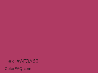 Hex #af3a63 Color is a normal rose color and the nearest color is Medium Ruby #aa4069. Hex code #af3a63 and RGB value is rgb(175,58,99). In RGB color space, this color is composed of 69% red, 23% green, 39% blue, In CMYK color space, this color is composed of 0% cyan, 67% magenta, 43% yellow , 31% black , In HSL color space, this color has a hue angle of 339° , 50% saturation and 46% lightness.